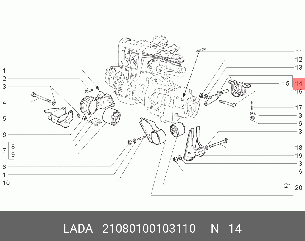 21080-1001031-10 LADA VAZ Кронштейн ВАЗ-2108 двигателя задний в сборе Н/О АвтоВАЗ