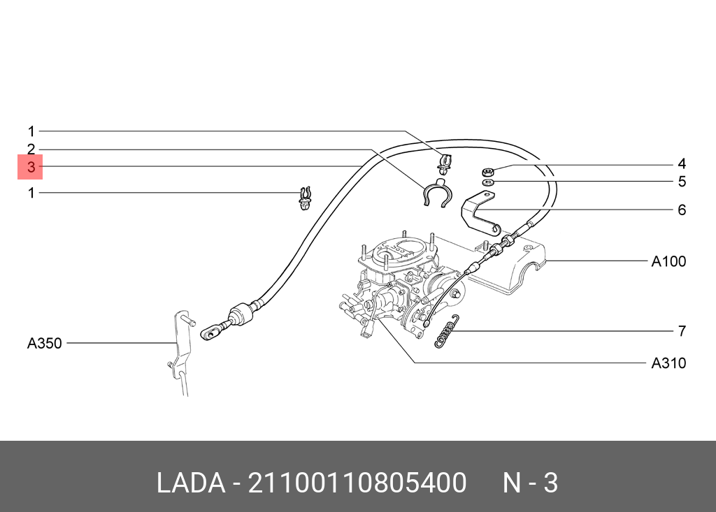 21100-1108054-00 LADA VAZ Трос акселератора ВАЗ-2110 в сборе АвтоВАЗ
