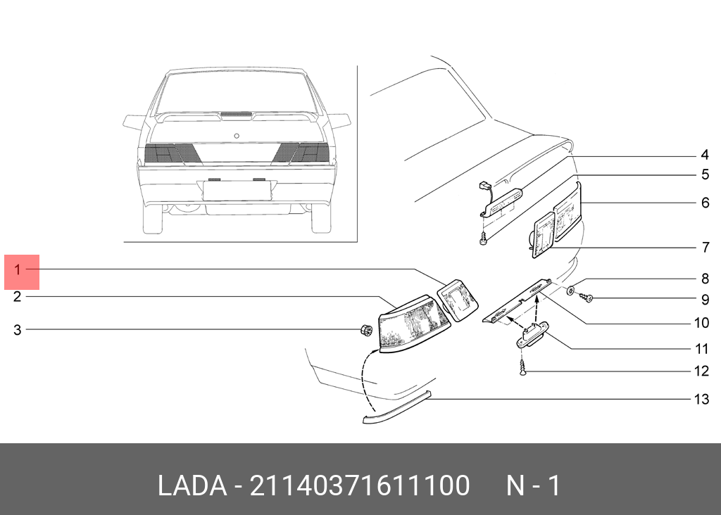 | Наименование | Фонарь задний ВАЗ-2115 левый внутренний АвтоВАЗ |
