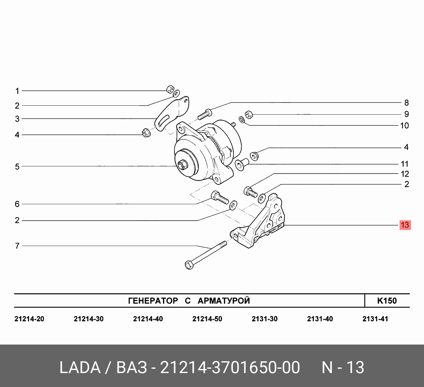21214-3701650-00 LADA VAZ Кронштейн ВАЗ-21214 генератора нижний АвтоВАЗ