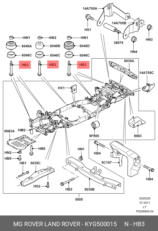 KYG500015 LAND ROVER болт подушки рамы!\ Land Rover Discovery/Discovery Sport