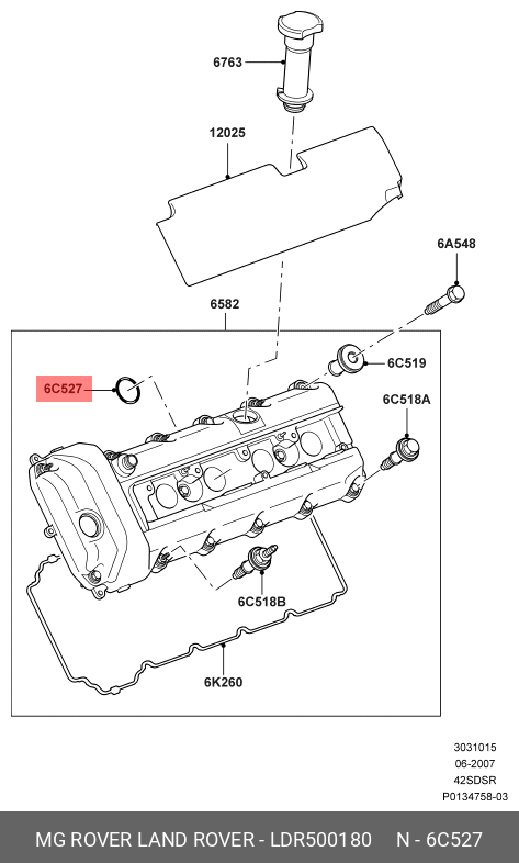LDR500180 LAND ROVER Прокладка LAND ROVER Range Rover Sport (13-) свечного колодца OE