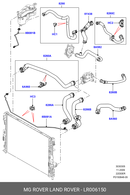 LR006150 LAND ROVER Трубка LAND ROVER Freelander (07-14) системы охлаждения OE