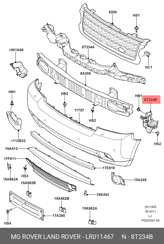 LR011467 LAND ROVER крепеж переднего бампера левый!\ Land Rover Range Rover 10