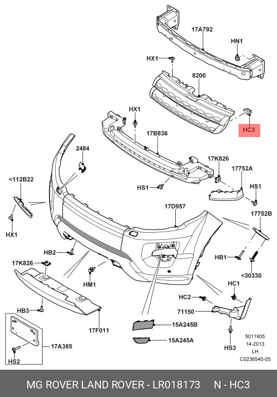 LR018173 LAND ROVER клипса решетки радиатора!\ Land Rover Discovery/Range Rover 10>