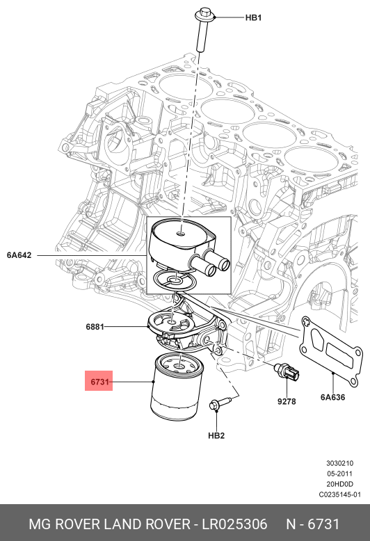 LR025306 LAND ROVER фильтр масляный!\ Land Rover Freelander/Evoque 2.0