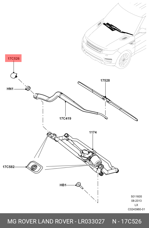 LR033027 LAND ROVER Крышка рычага стеклоочистителя LR033027