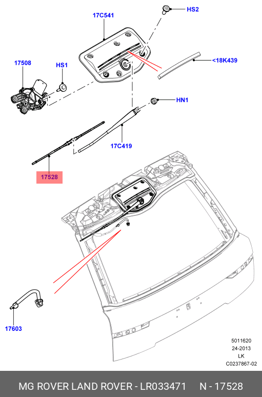 LR033471 LAND ROVER LR033471 Щетка стеклоочистителя задняя Ленд Ровер