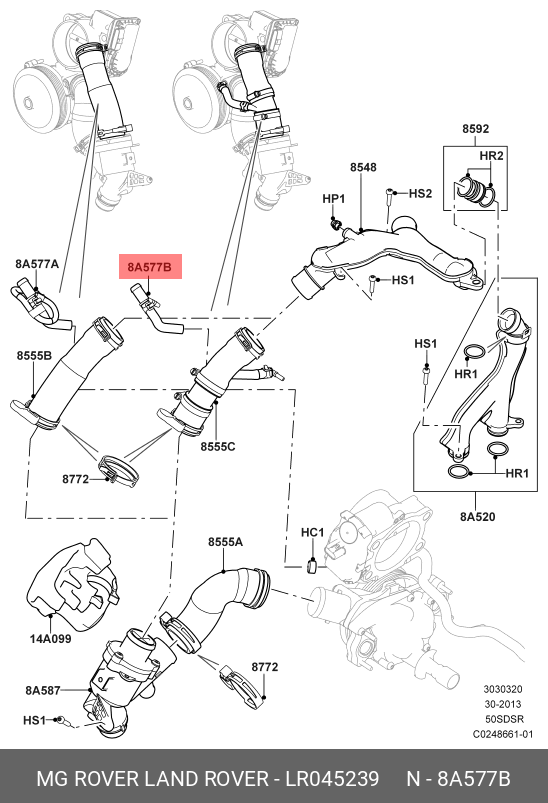 LR045239 LAND ROVER Шланг охлаждения 5.0SC LAND ROVER