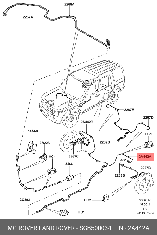 SGB500034 LAND ROVER SGB500034 Трубопровод суппорта Зд Л (на кузове) Ленд Ровер