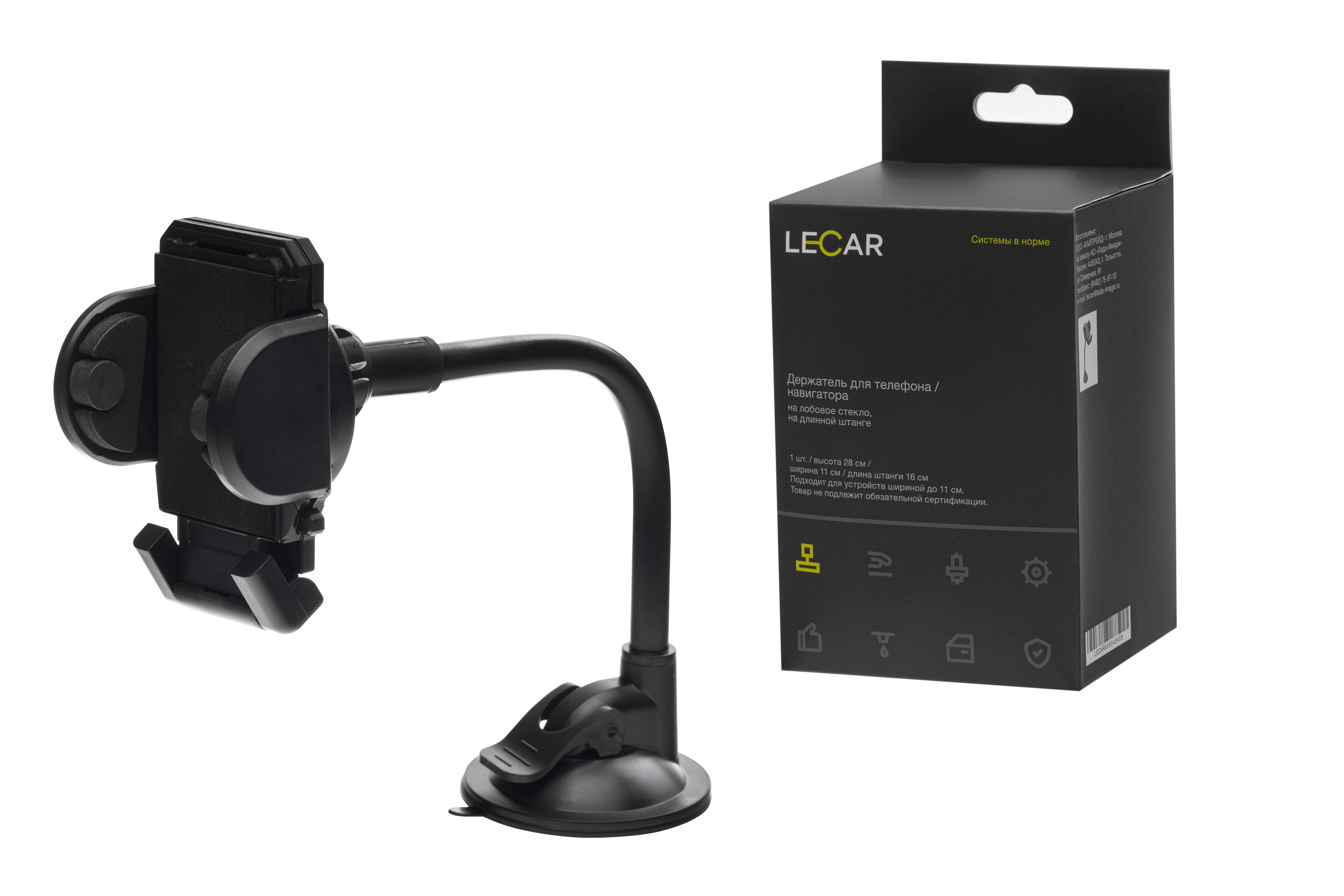 LECAR000040409 LECAR Держатель телефона на стекло (универсальный) на длинной штанге