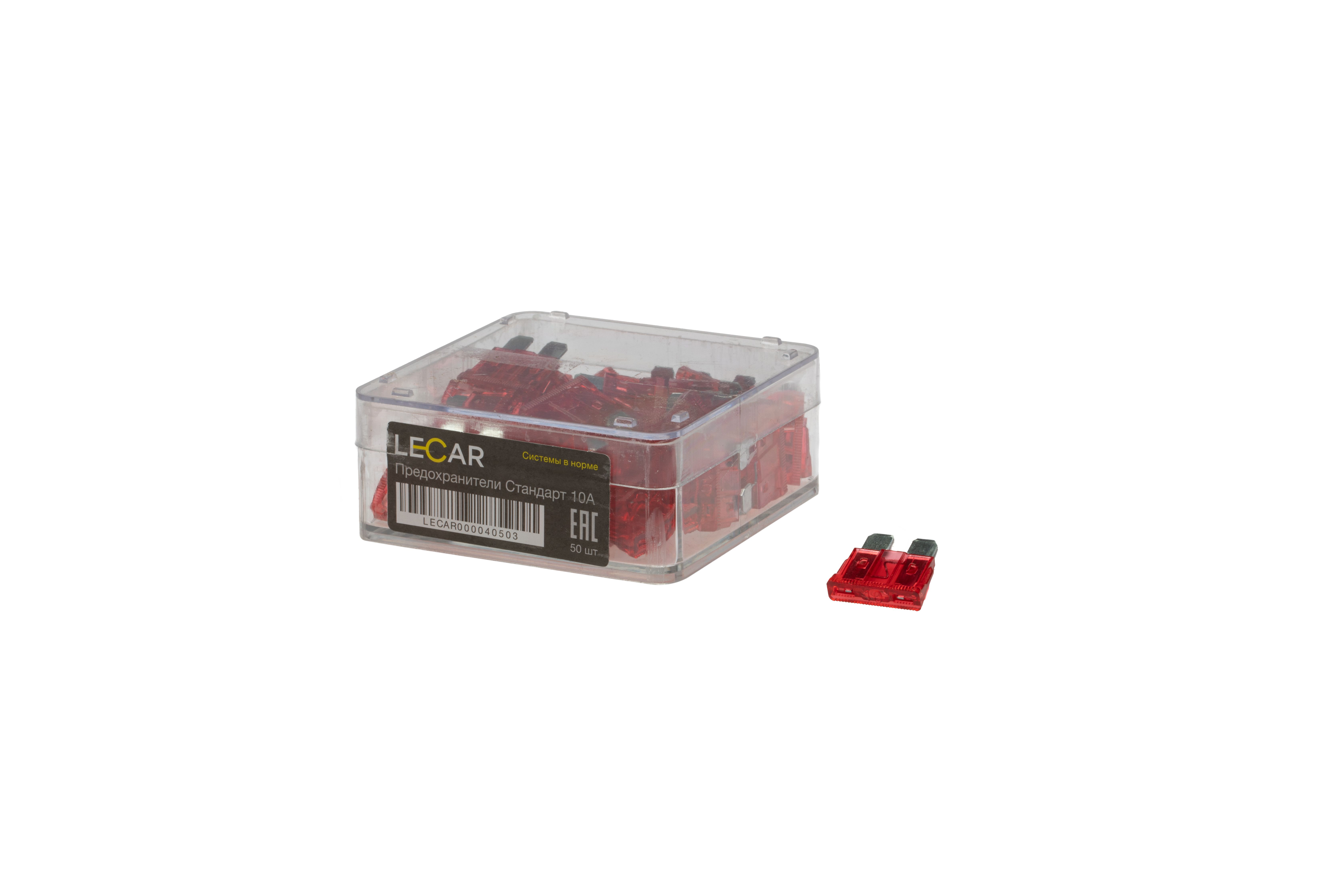 LECAR000040503 LECAR Предохранители 10А, 50 шт, (пластиковый бокс) LECAR Стандарт