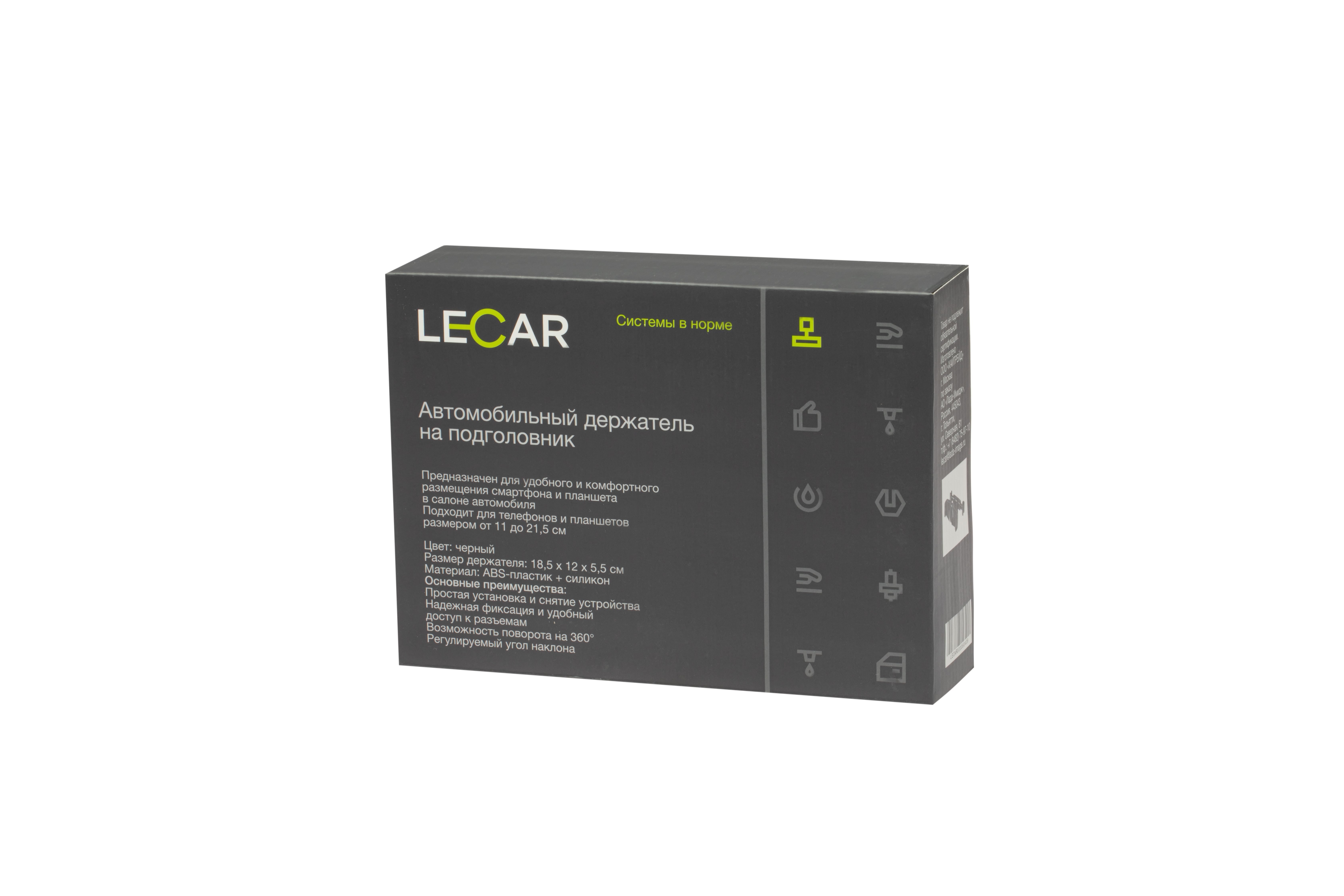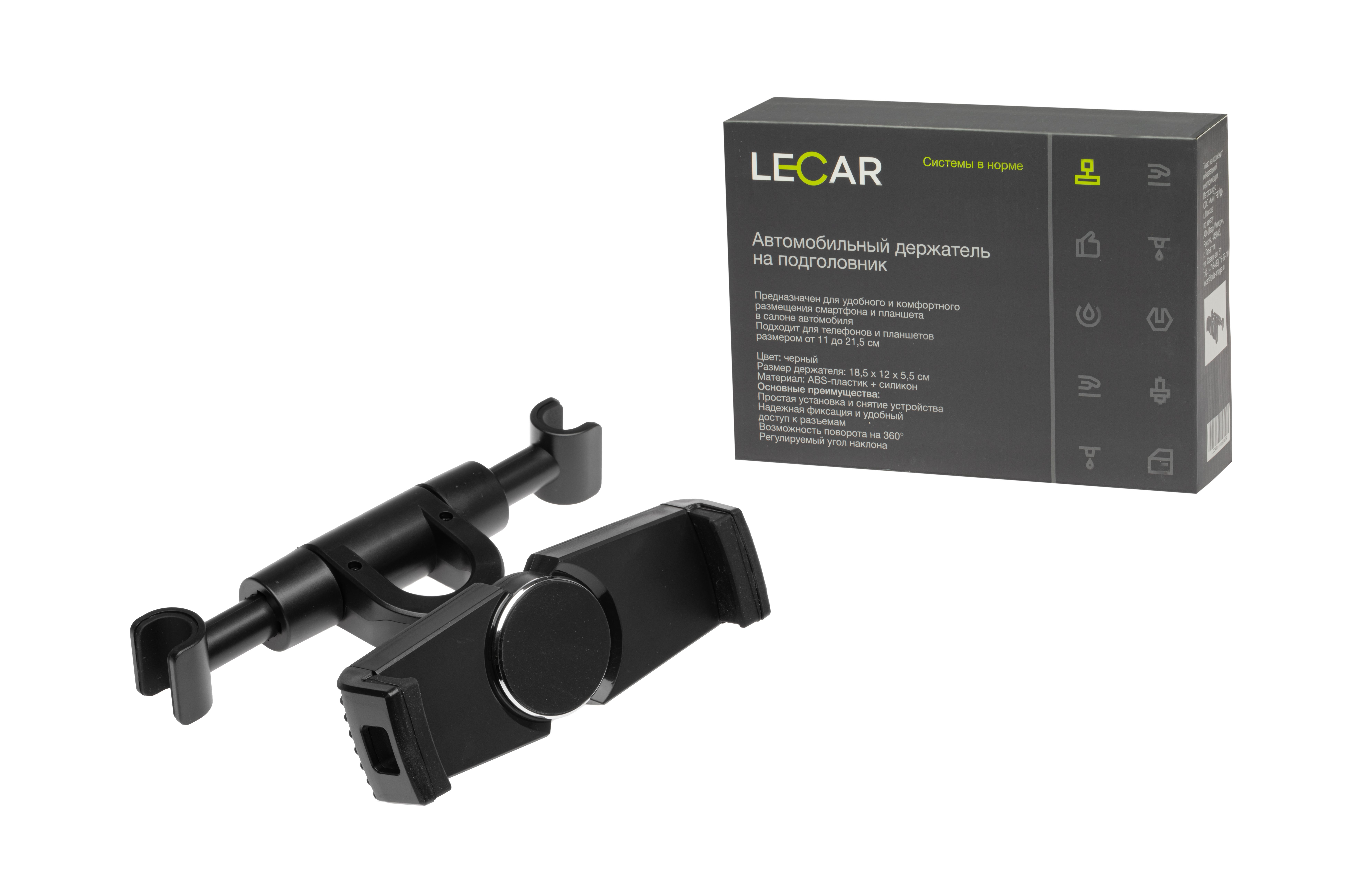 LECAR000060409 LECAR Держатель телефона на подголовник (185*120*55 мм) черный