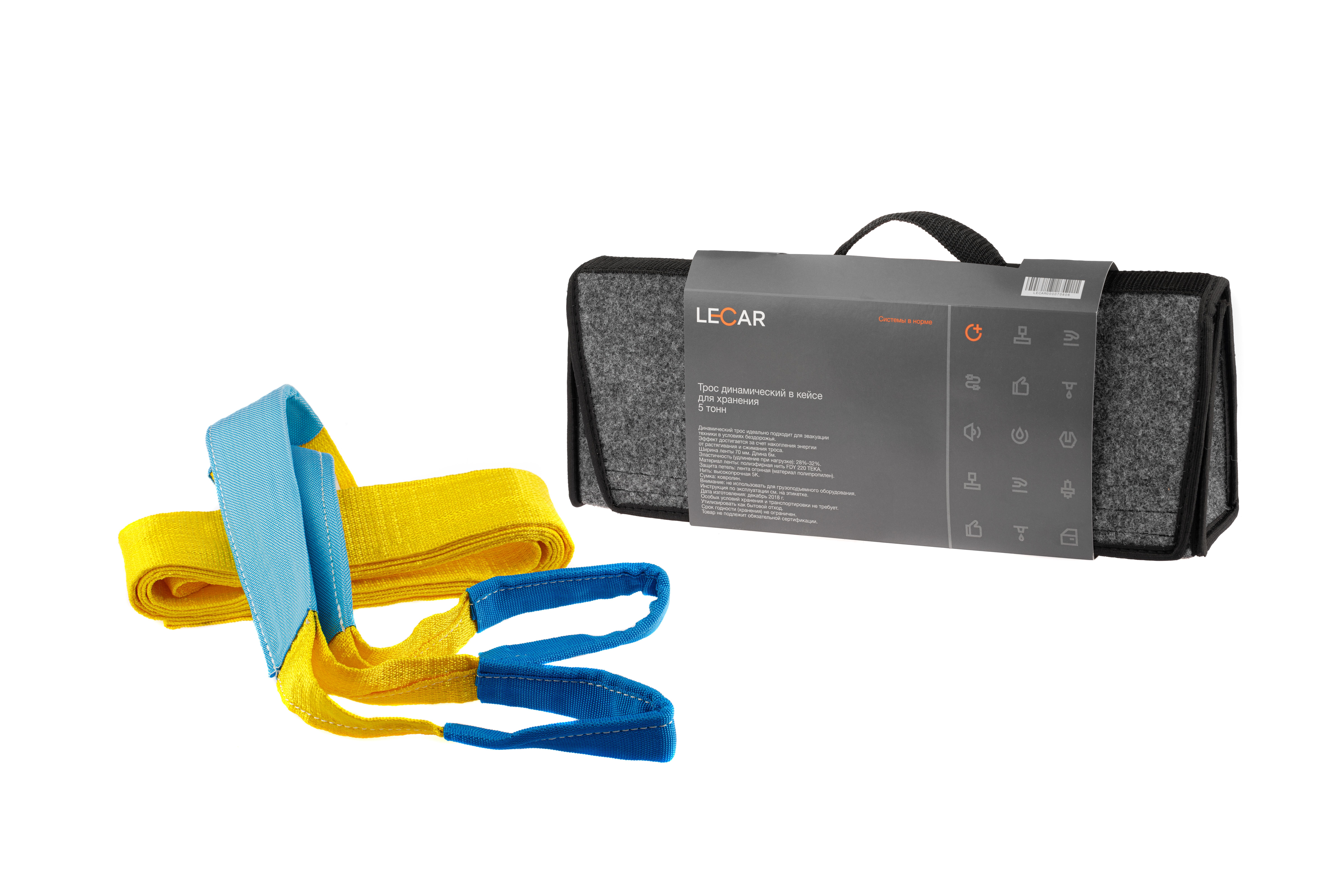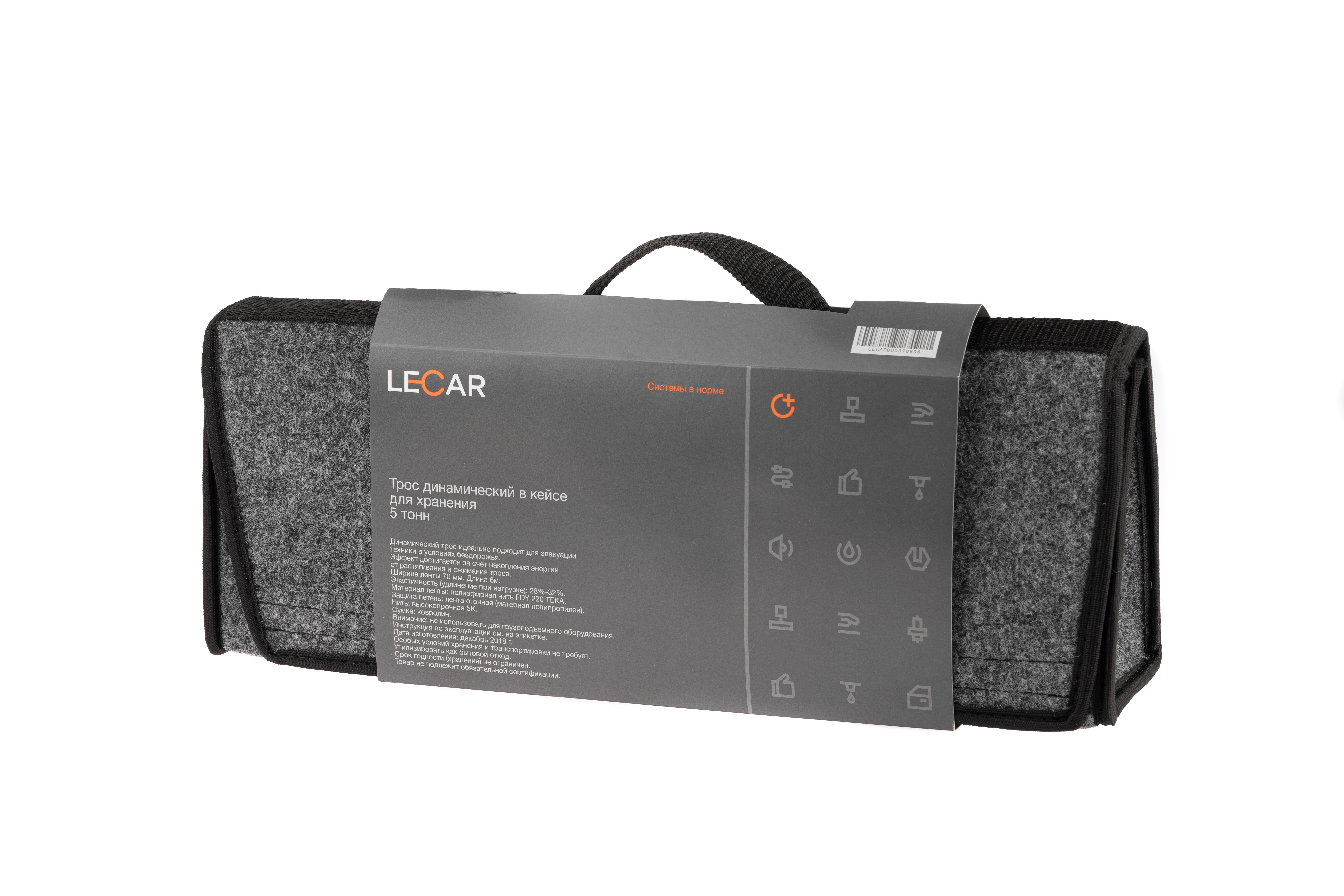 LECAR000070806 LECAR Трос буксировочный 5т динамический ширина ленты 70мм, 6м, сумка LECAR