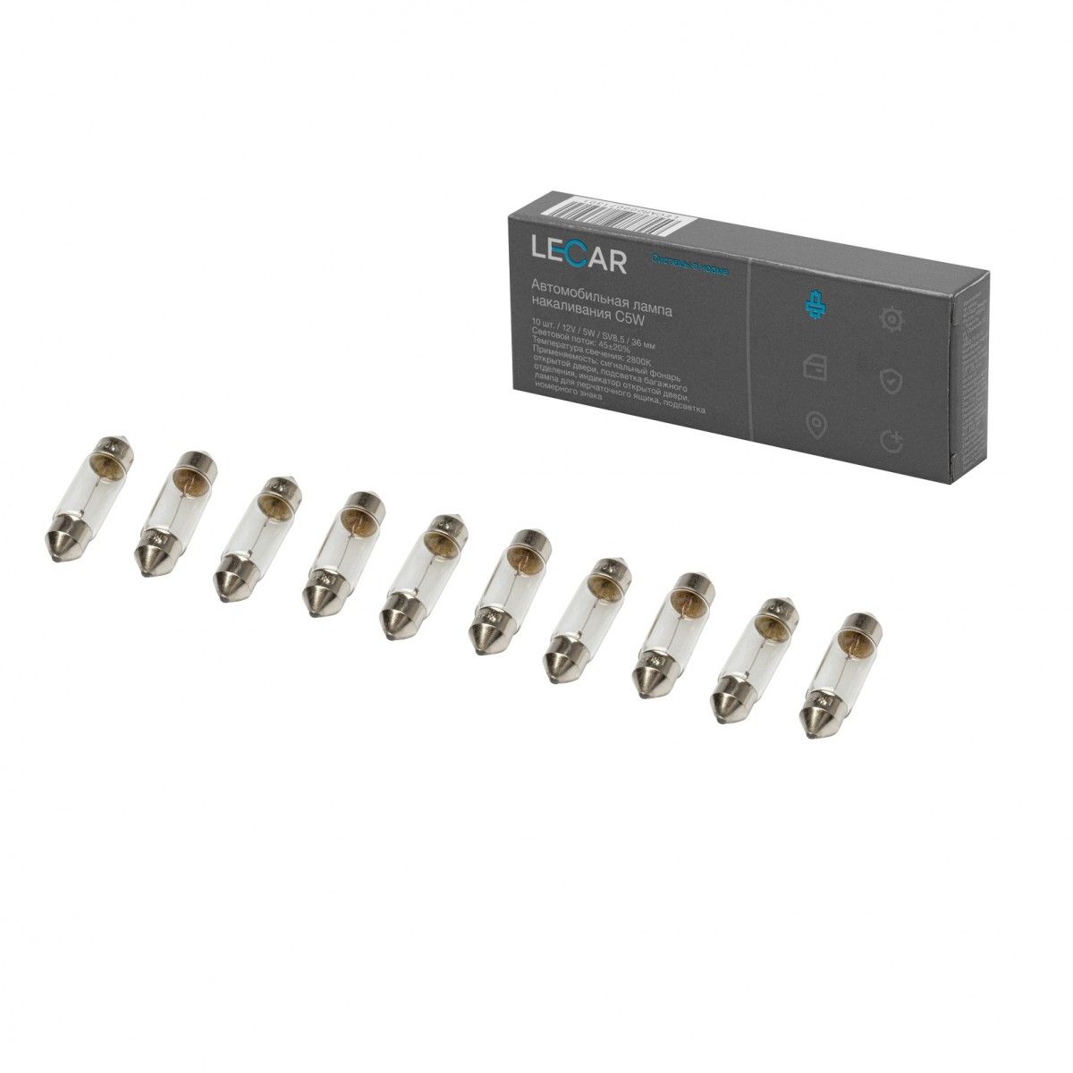 LECAR000071301 LECAR Лампа галогенная C5W 12V 5W (SV8.5) (упак. 10 шт)