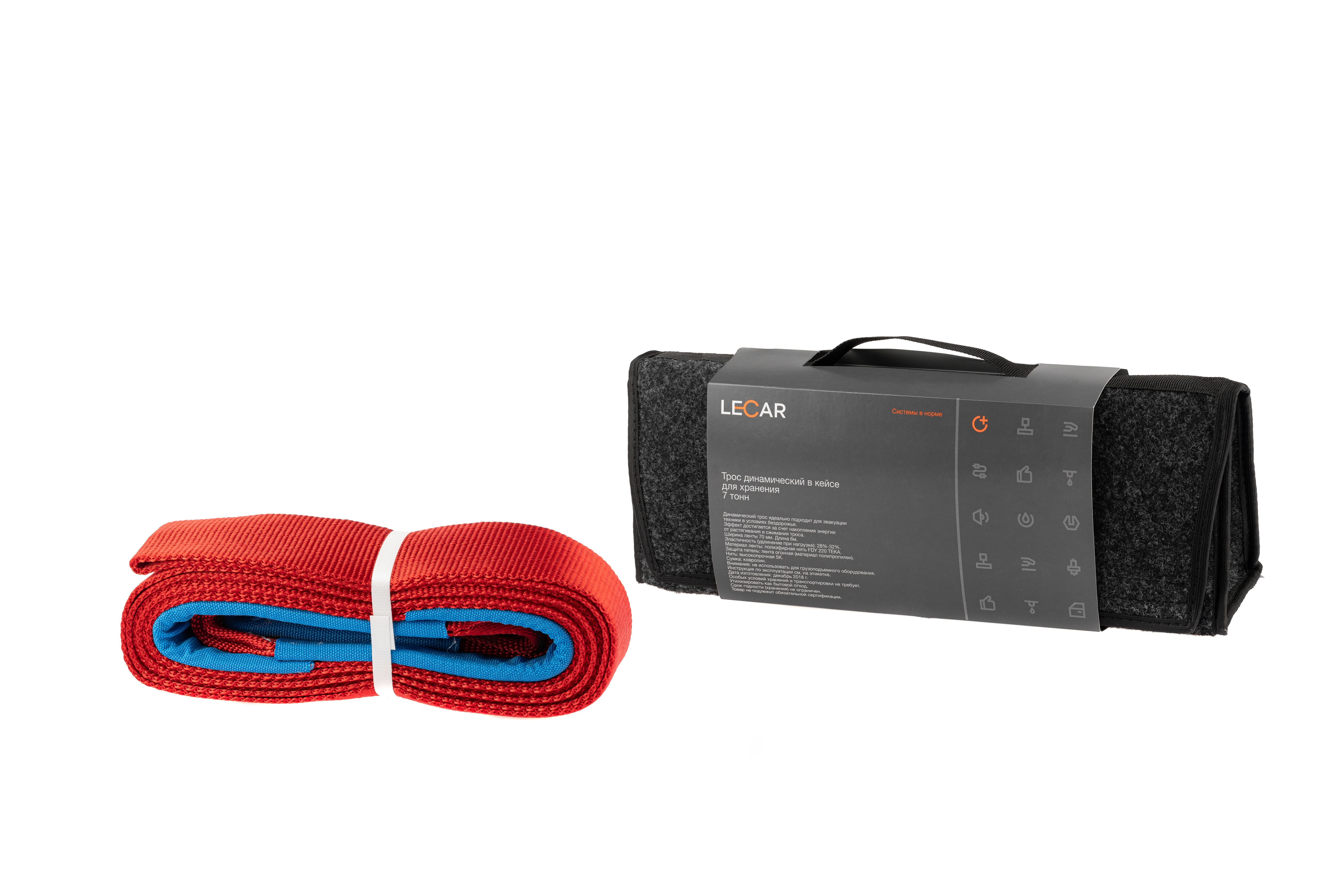 LECAR000080806 LECAR Трос буксировочный 7т динамический ширина ленты 70мм, 6м, сумка LECAR