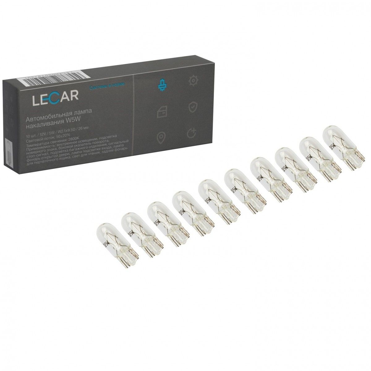 LECAR000191301 LECAR Лампа галогенная W5W 12V 5W (W2.1X9.5D) (упак. 10 шт)