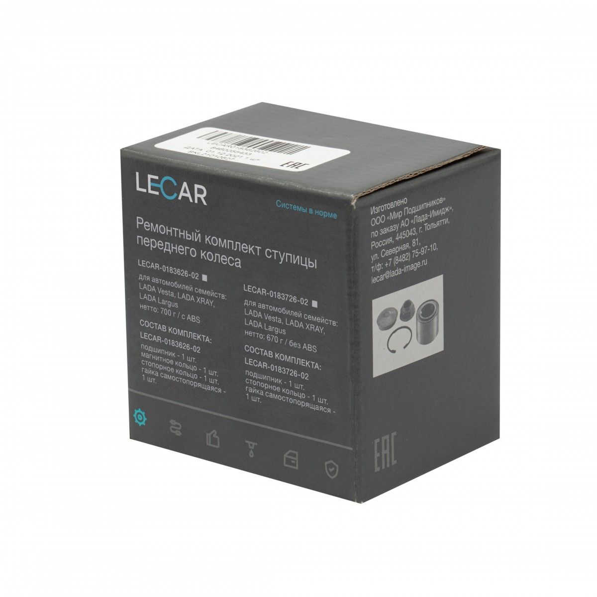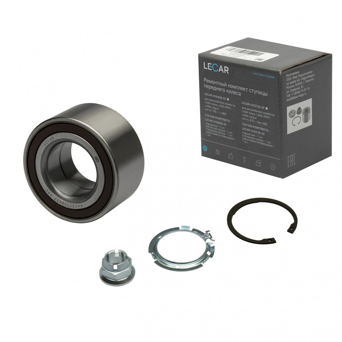 LECAR018362602 LECAR Подшипник ступицы передней ВАЗ Largus, Vesta, Xray, RENAULT Logan (под АБС) с 03