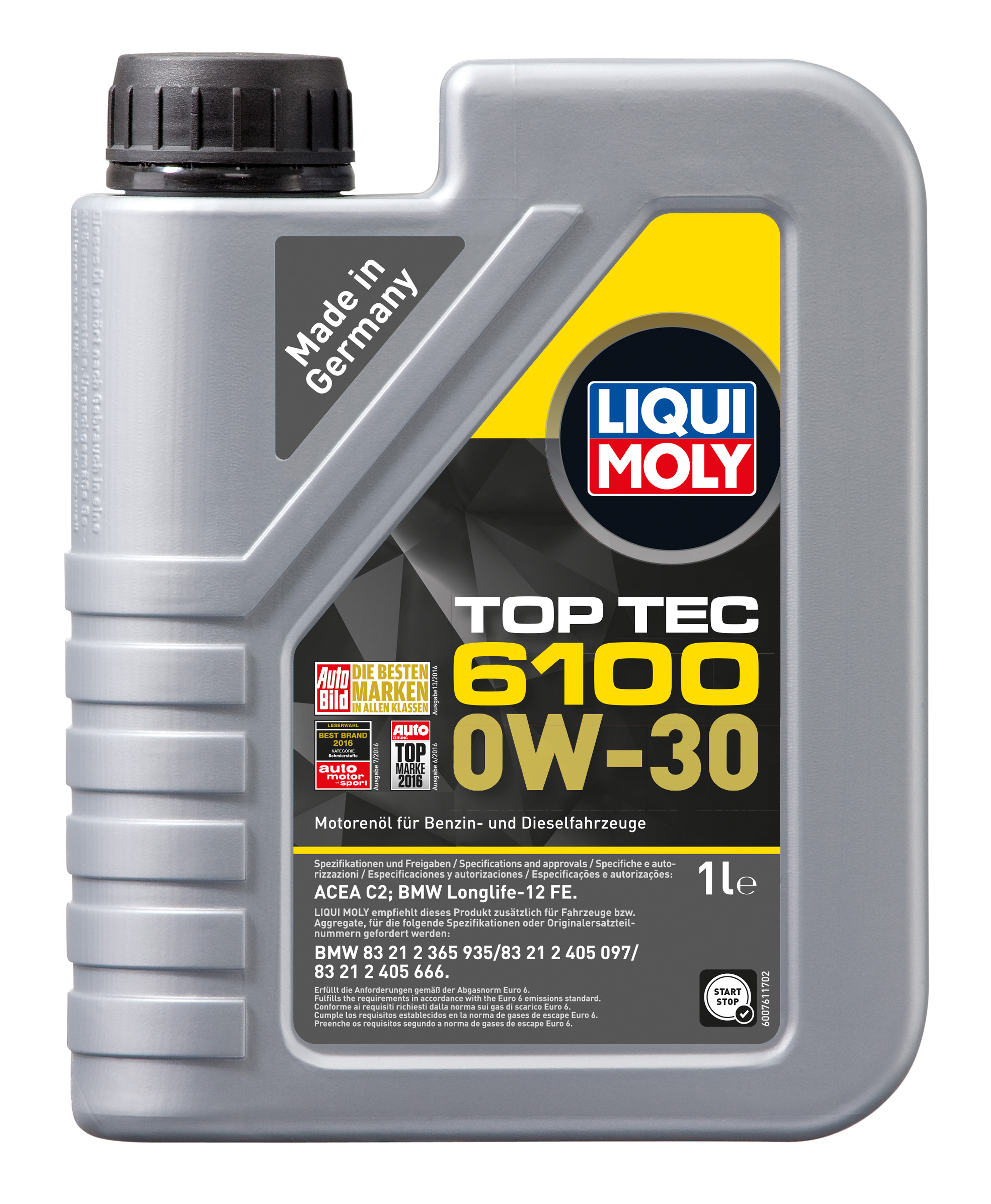 | Наименование | LIQUI MOLY TOP TEC 6100 0W30 1Л API SP ACEA C2 BMW Longlife-12 FE MB 229.61/227. |