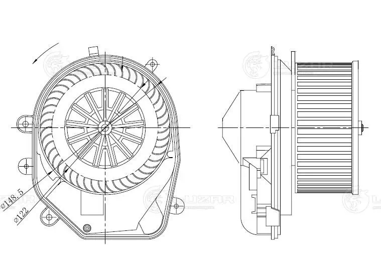LFH18D1 LUZAR Вентилятор отопителя салона для а/м VW Passat B5 (96-)/Audi A4 (94-) A/C+ LFh18D
