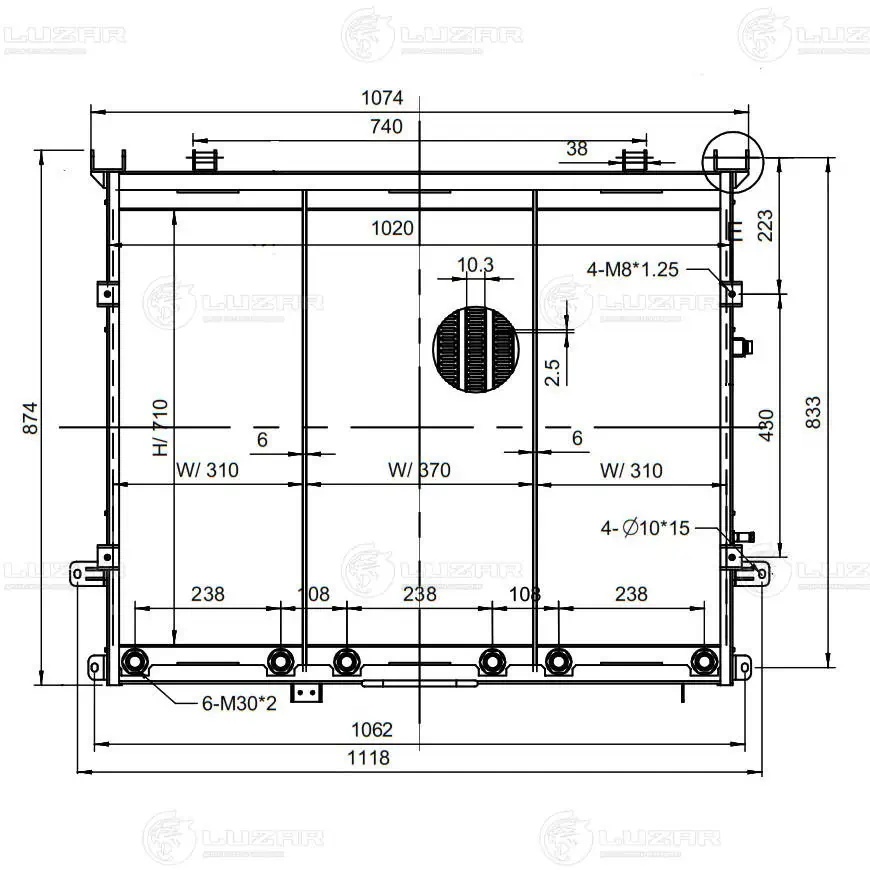 LOC0604 LUZAR радиатор масляный! 1118x874x124\ К-744Р1 Кировец дв. ЯМЗ-238НД