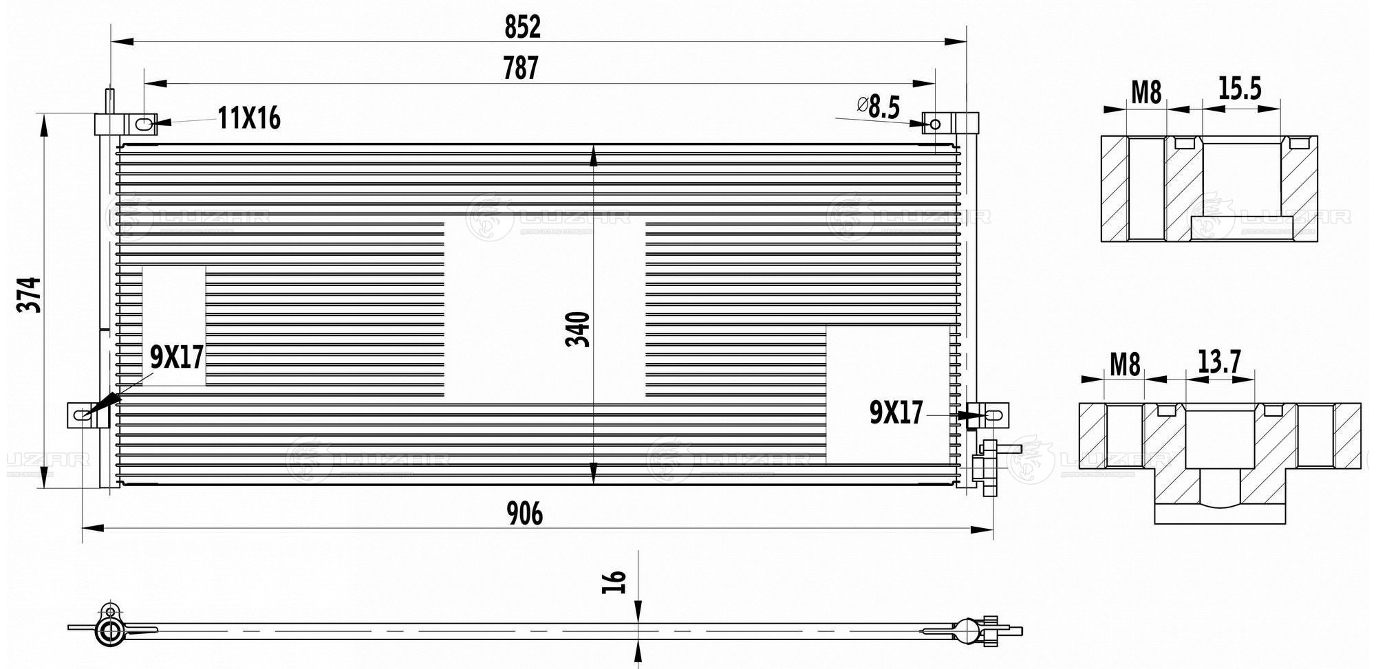 LRAC 1071 LUZAR Радиатор кондиц. для а/м Volvo FH (12-)/RenaulTTruckSC,K,T-series)(13-) LRAC1071