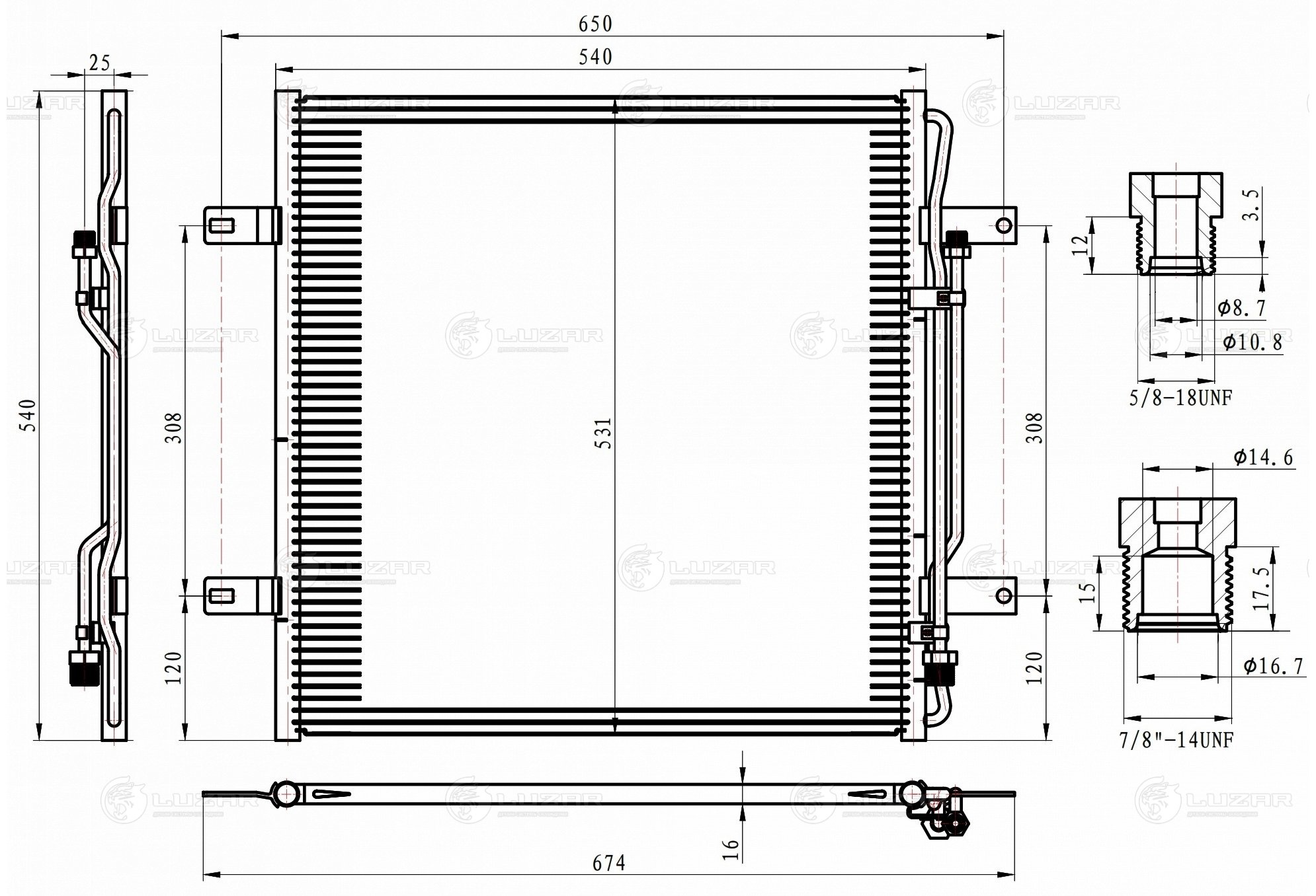 LRAC 1569 LUZAR радиатор кондиционера! L500 H531\ MB Atego/Atego II 98>