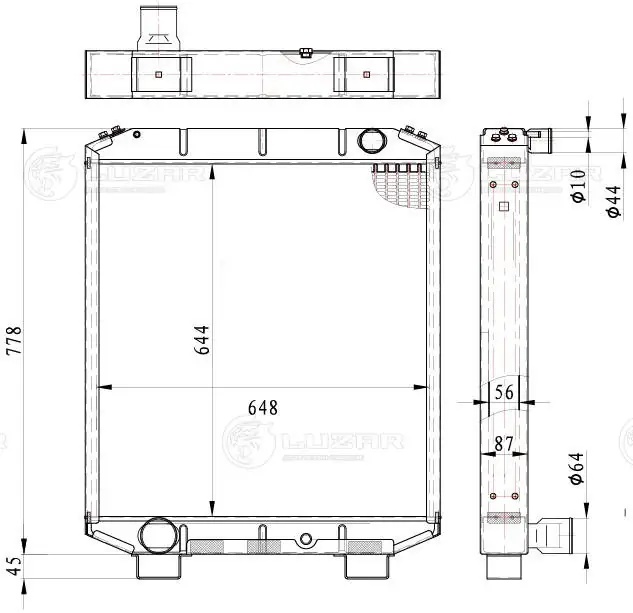 LRC 0307 LUZAR Радиатор вод ПАЗ-3204,КАВЗ-4235,4238 дв ЯМЗ 5346, Cummins 6ISBe160, 210 /LUZAR/