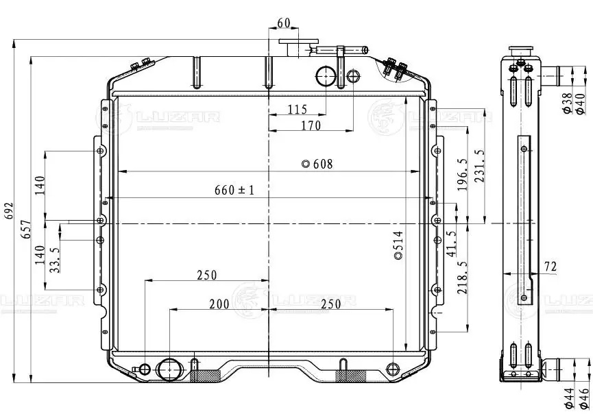 | Наименование | Радиатор ГАЗ-53 алюминиевый паянный LUZAR |