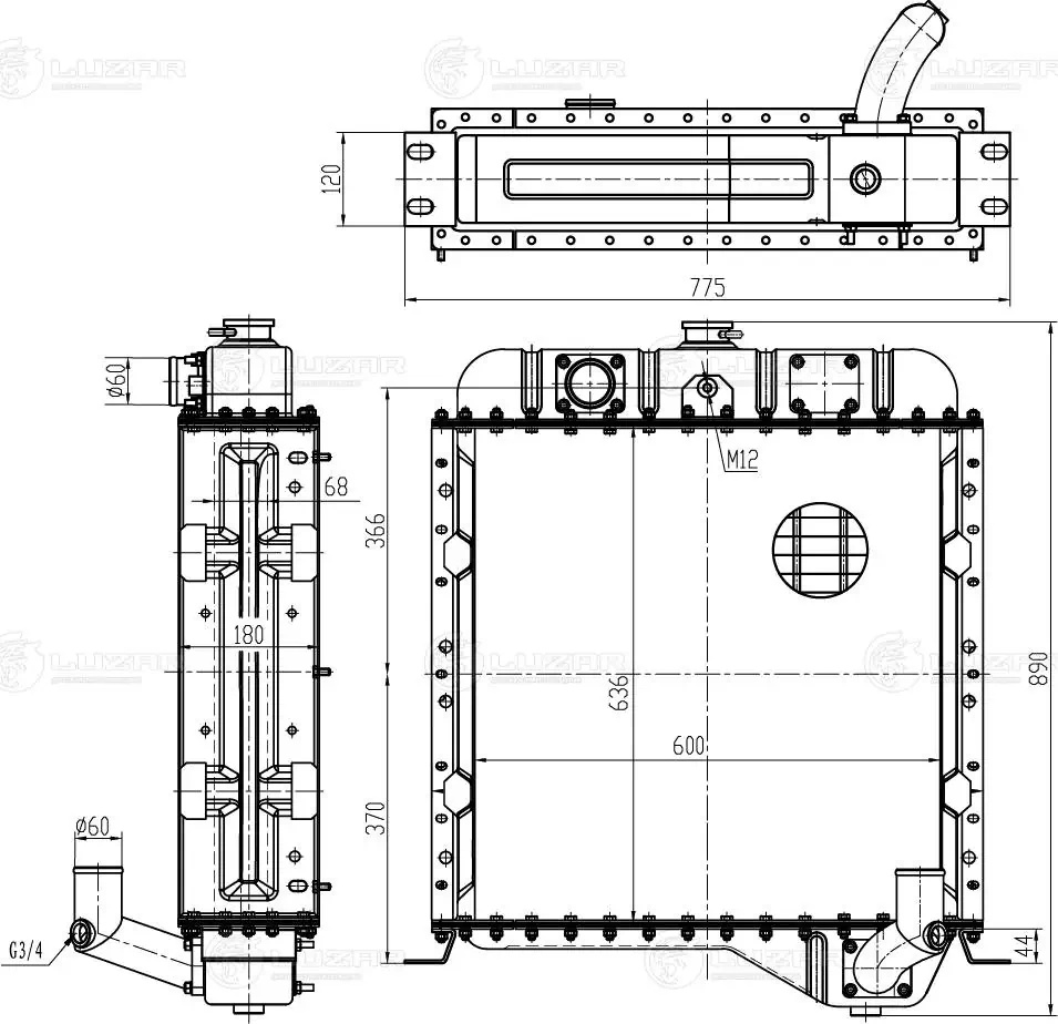 LRC 0651 LUZAR радиатор системы охлаждения! L600 H636\ Амкодор 332/333/342/343/344 11.2D