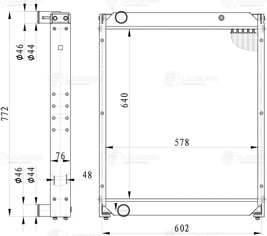 LRC0712 LUZAR Радиатор JAC N120 (19-) КАМАЗ Компас-12 охлаждения двигателя LUZAR
