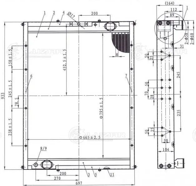 LRC07651B LUZAR Радиатор КАМАЗ-43118,65115,6520,6540 дв.740.55,62,CUMMINS ЕВРО-3 алюминиевый LUZ