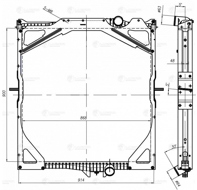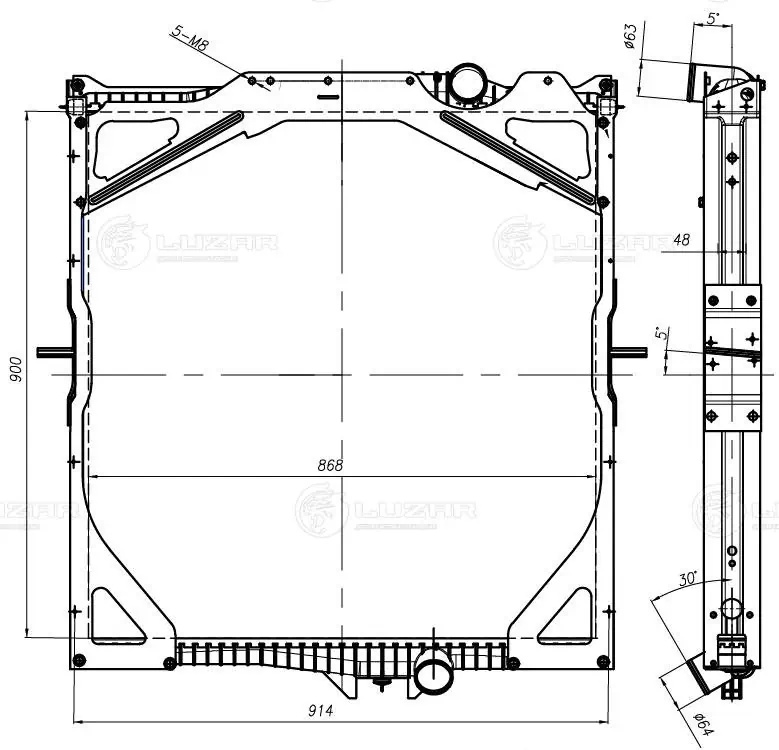 LRC 1074 LUZAR радиатор охлаждения! с рамкой\ Volvo FH 93>/FH 02>