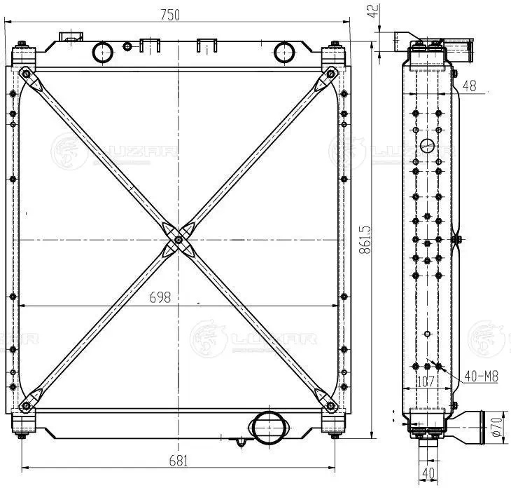 LRC12A5 LUZAR Радиатор МАЗ-5432А5,5440А5,6422А5 алюминиевый дв.ЯМЗ-6582.10Е3 LUZAR