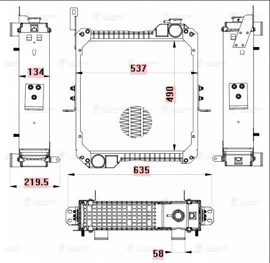 LRC 3115 LUZAR Радиатор TEREX TLB 815,820,825,860,970,980 (дв.1104C-44T,1104D-44Т,1044С-44Т) ал
