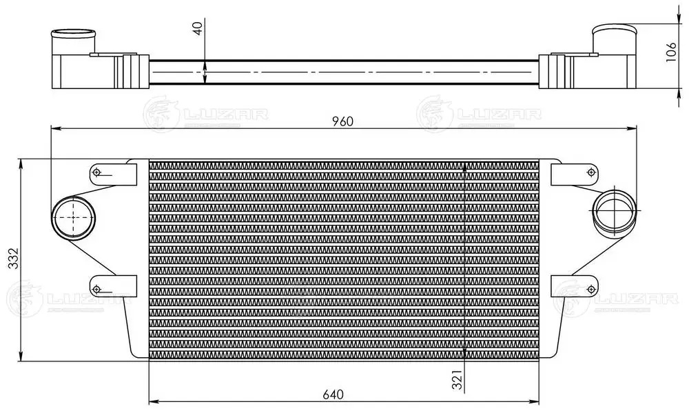 LRIC0308 LUZAR Охладитель ГАЗ-33081,3309 дв.Д-245.7Е2,9Е2 наддувочного воздуха алюминиевый LUZA