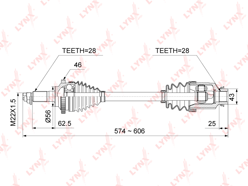 CD-1016A LYNXAUTO Привод KIA Spectra (94-) колеса переднего правый LYNX