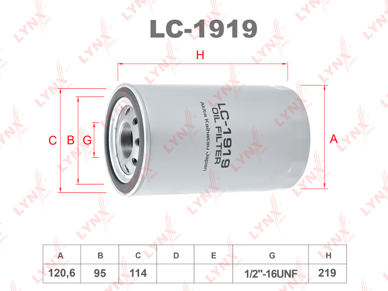 LC-1919 LYNXAUTO Фильтр масляный HINO LYNX
