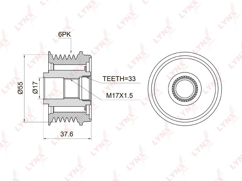 PA-1006 LYNXAUTO Муфта свободного хода генератора подходит для MAZDA 3(BK/BL) 1.6 03 / 6(GG) 1.8-