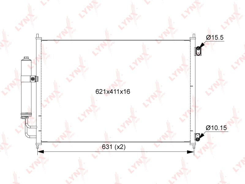 RC0016 LYNXAUTO Радиатор кондиционера NISSAN X-Trail (T31) LYNX
