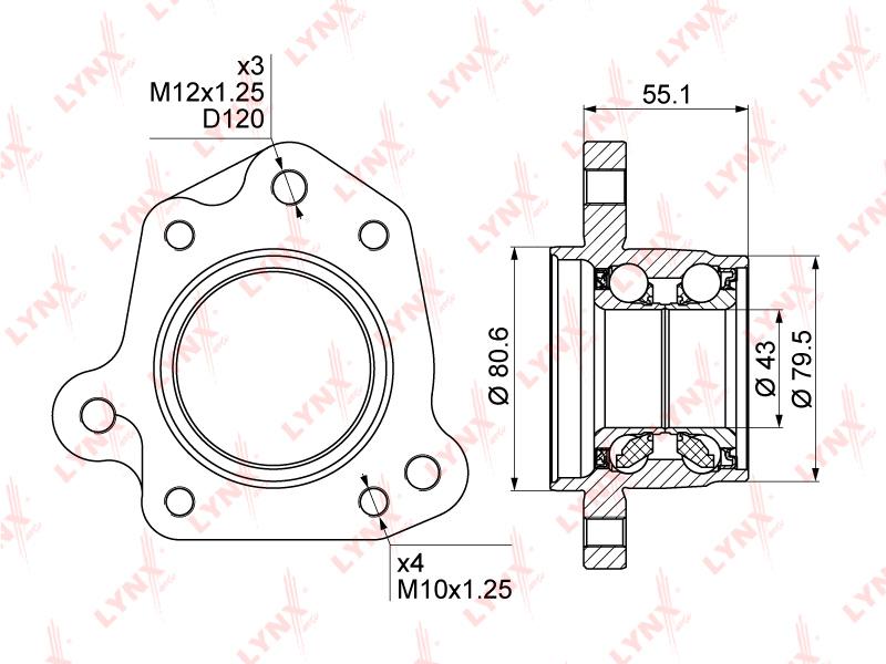WB-1010 LYNXAUTO Подшипник ступицы задний R (d 43/80,5мм) подходит для HONDA CR-V 2.0 95-02 WB-10