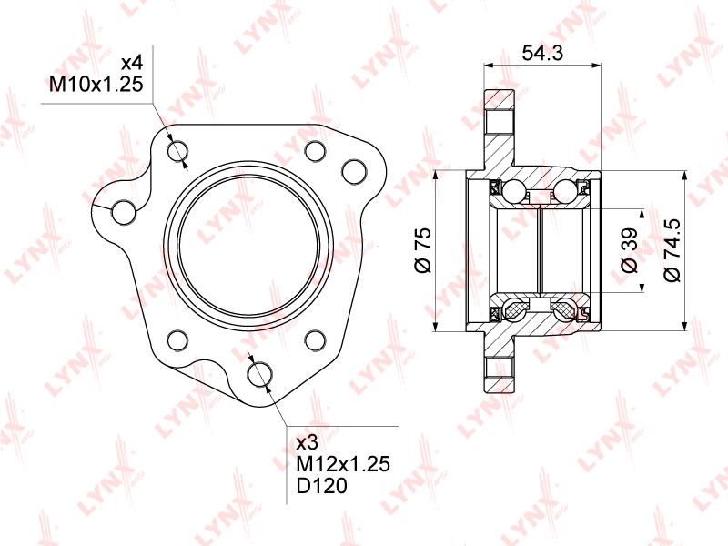 WB-1011 LYNXAUTO Подшипник ступицы задний L (d 39/75мм) подходит для HONDA CR-V 2.0 95-02 WB-1011