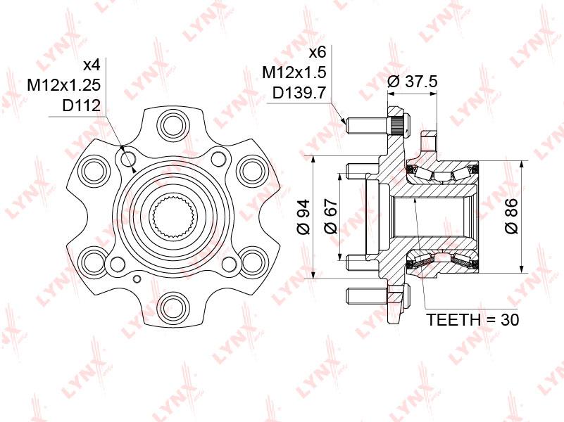 WH-1177 LYNXAUTO Ступица передняя в сборе подходит для MITSUBISHI Pajero III 2.5D-3.8 01 / IV(V8_