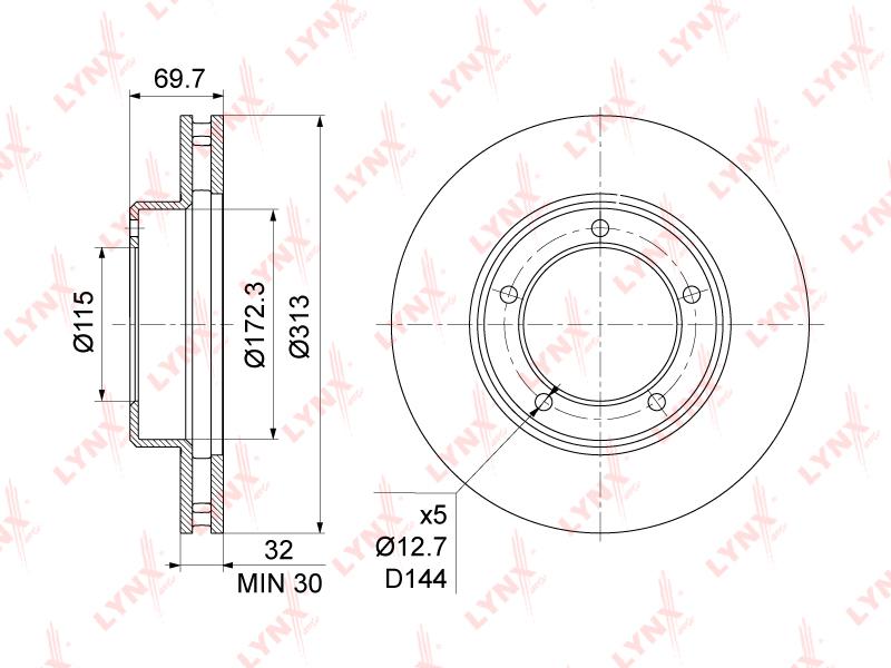 BN-1175 LYNXAUTO диск тормозной передний!\ Toyota Land Cruiser 100 4.7/4.2TD 98>