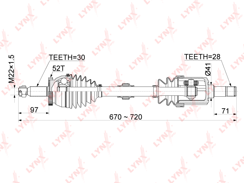 CD-1054A LYNXAUTO привод в сборе! передний левый\ Hyundai Santa Fe 2.2D AT 06-12