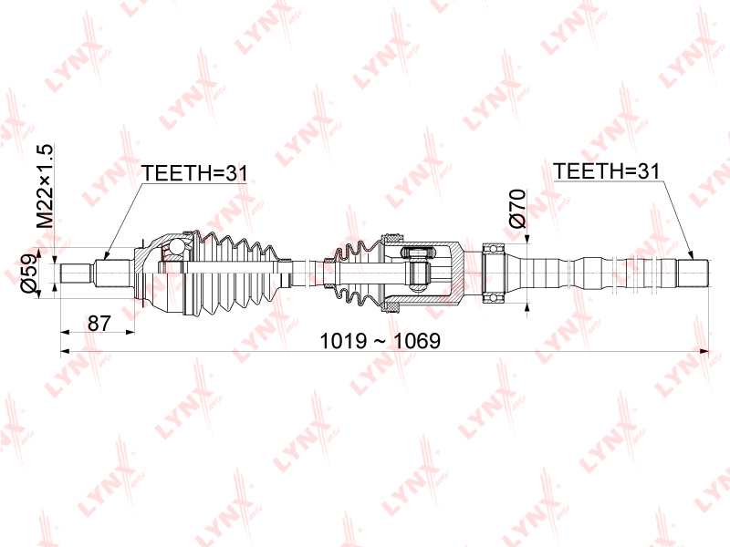 CD-1077 LYNXAUTO привод правый!\ Mazda 6/CX5 2.0 12>
