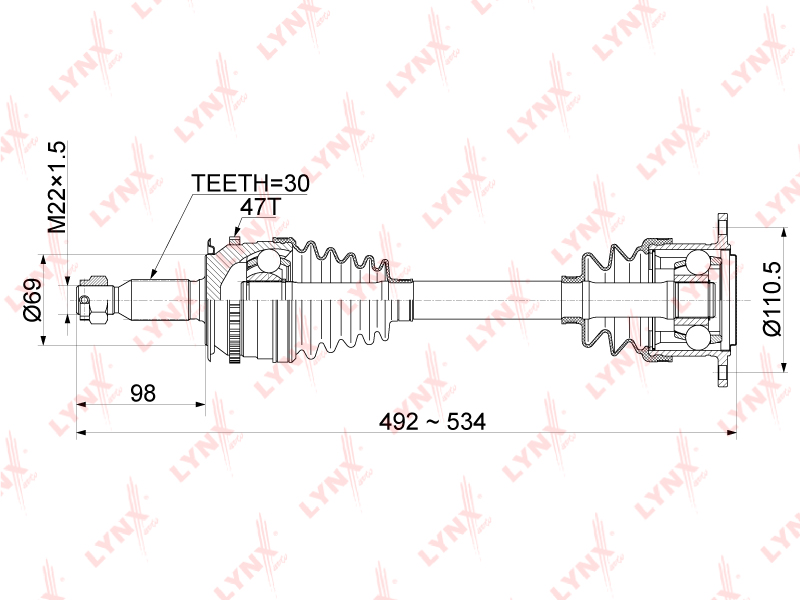 CD-1086A LYNXAUTO Привод в сборе передний правый