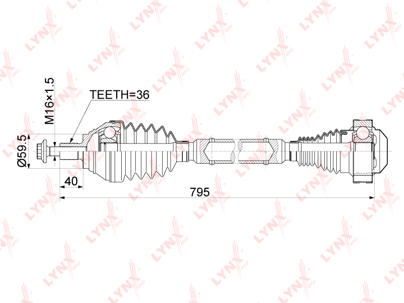 CD-1139 LYNXAUTO привод в сборе правый!\ Skoda Octavia 1.4-1.8 09>, VW Golf VI-VII