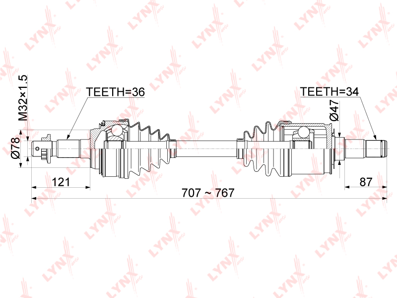 CD-1158 LYNXAUTO привод передний правый! 34x760x36мм\ Toyota Tundra 06>