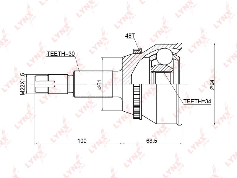 CO-3758A LYNXAUTO ШРУС наружный к-кт! ABS, 4346049126\ Toyota Highlander 2.4/3.3 00-07